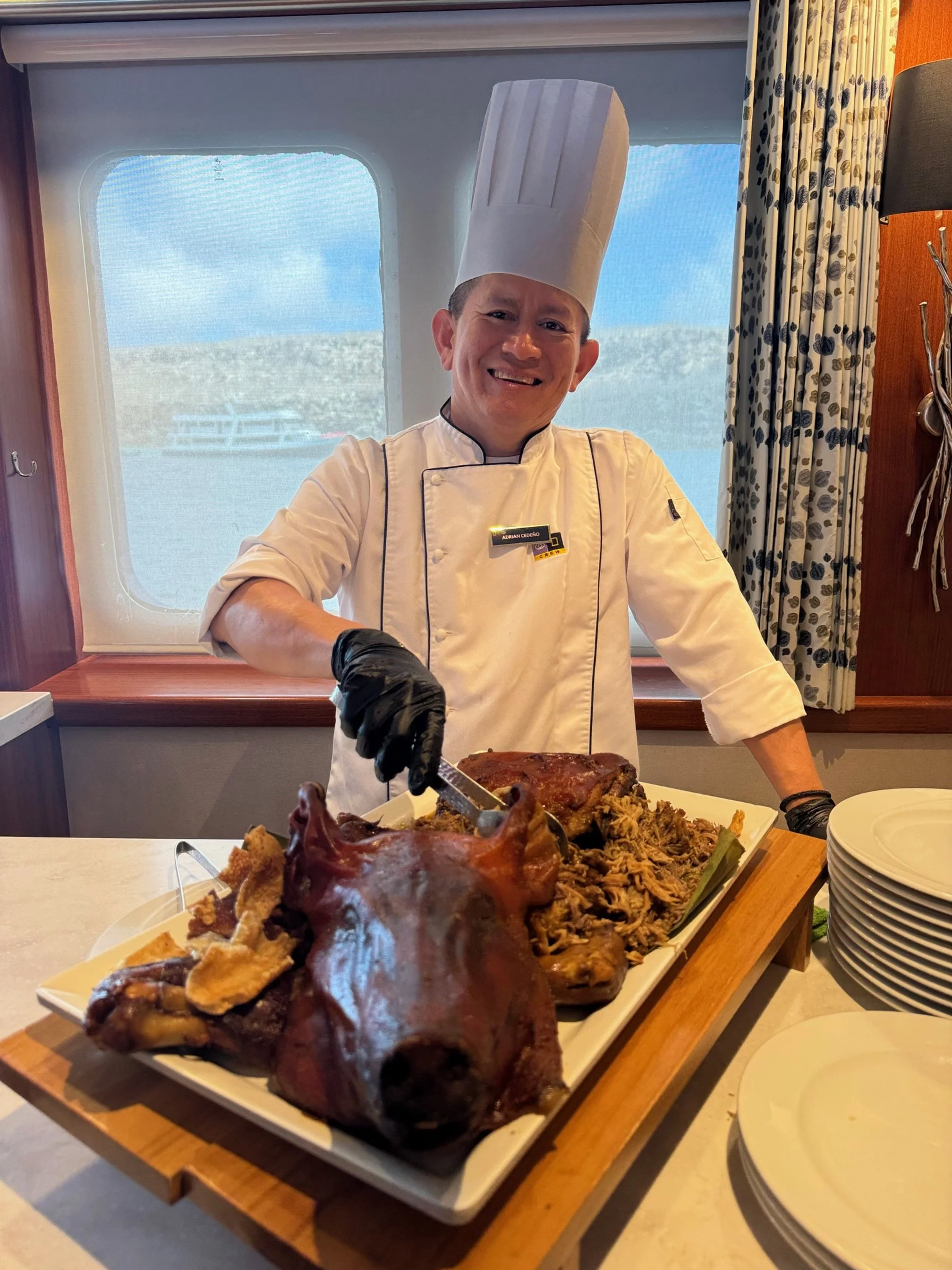 After dropping our bags, we made our way to lunch. I thought the food onboard was great. This is not a great cruise though if you want American food and pizza and pasta at all meals. All of our meals had an Ecuadorian flair. This is really regional cuisine. The avocados onboard were particularly great.