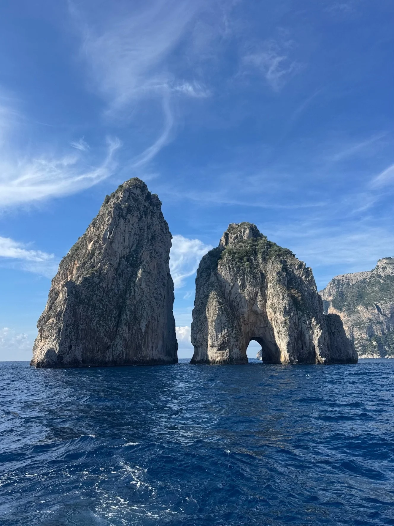 View from our private yacht charter from Ischia to Capri (pictured) and onwards to Amalfi. Incredible!