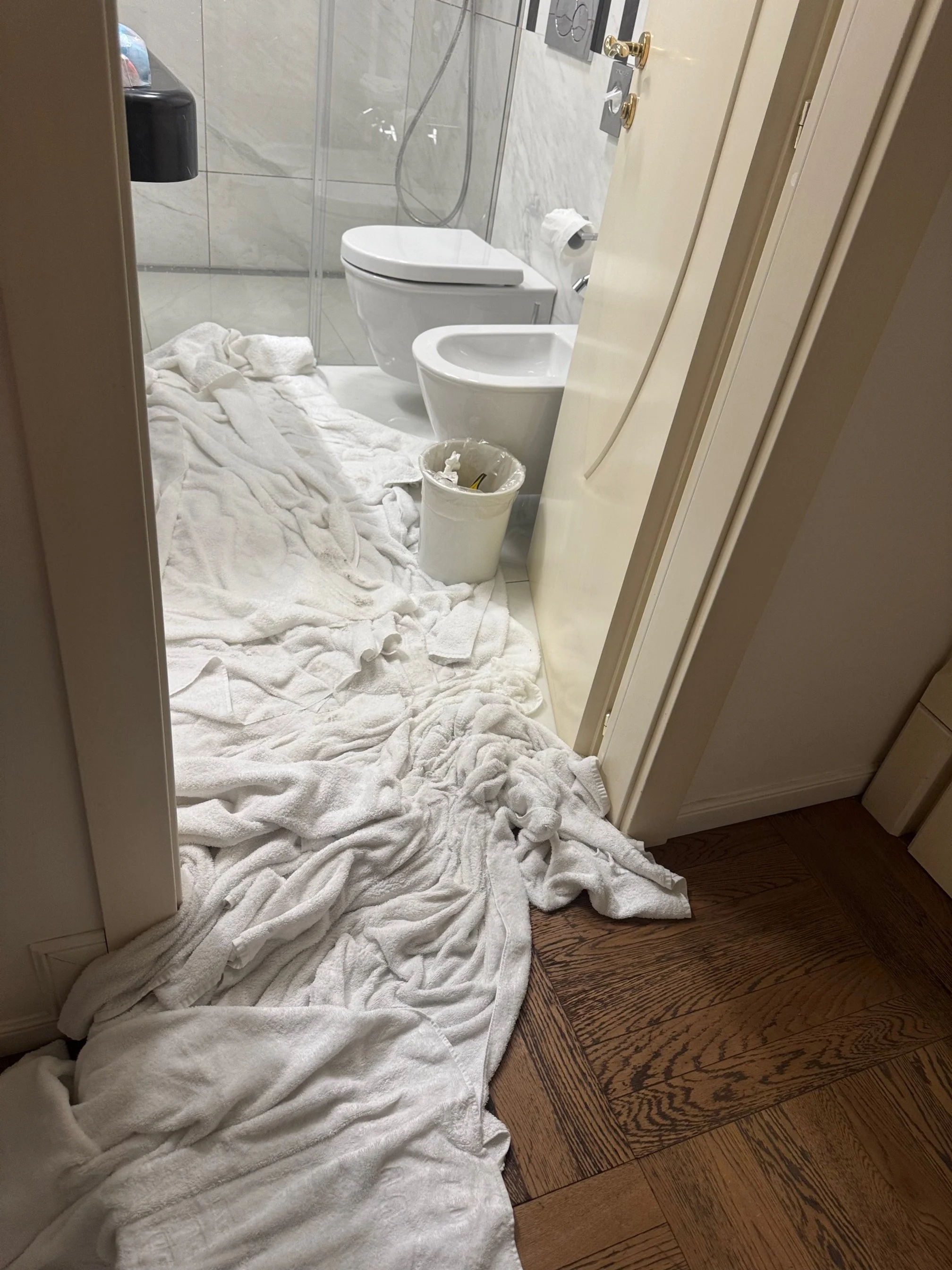 The night of the infamous flood at Albergo Terminus. The hotel put down the towels, not me.
